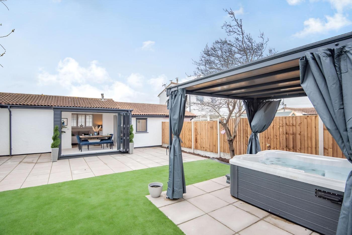 Holiday Home. Guests will have a special experience as this holiday home offers a hot tub and a fireplace. This spacious holiday home comprises 3 bedrooms, a seating area with a sofa and 1 bathroom with a walk-in shower. The fully equipped kitchen features a stovetop, a refrigerator, a dishwasher and a microwave. The holiday home provides a washing machine, a dining area, a wardrobe, an electric kettle, as well as a TV. The unit offers 4 beds.