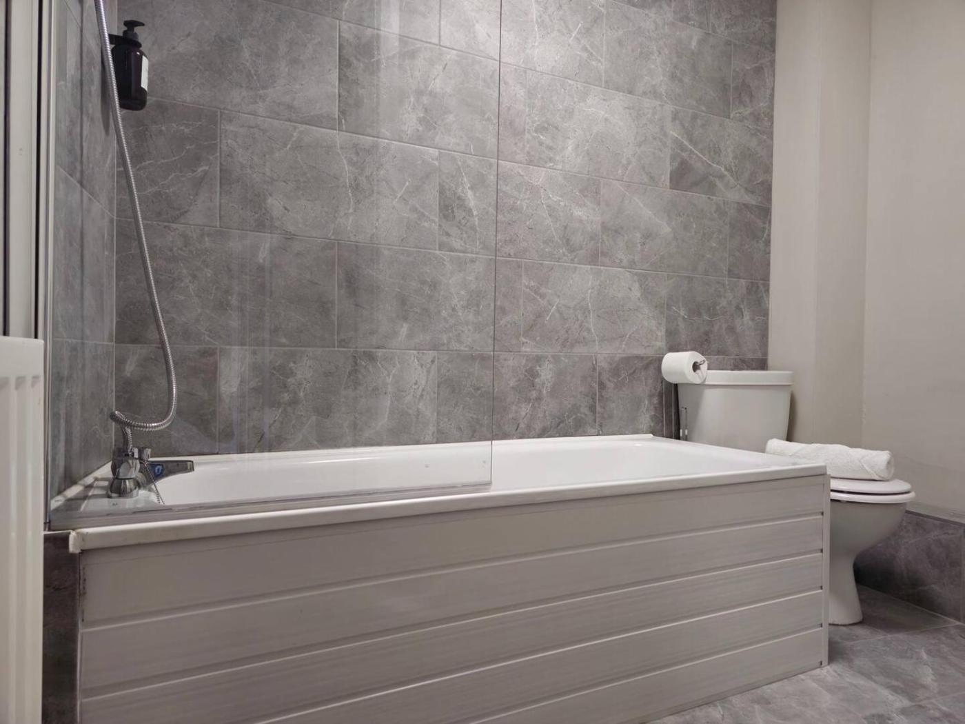 Three-Bedroom Apartment. Offering free toiletries, this apartment includes a shared bathroom with a bath, a shower and a hairdryer. The well-fitted kitchen features a stovetop, a refrigerator, a dishwasher and kitchenware. The spacious apartment offers a flat-screen TV with streaming services, a washing machine, a private entrance, a seating area as well as city views. The unit offers 3 beds.