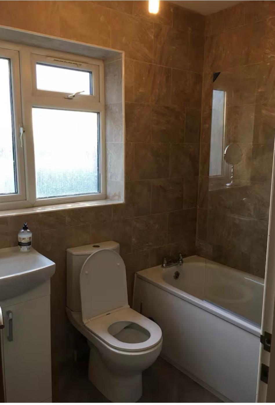 Double Room with Shared Bathroom. The double room features a washing machine, a tea and coffee maker, as well as a shared bathroom boasting a bath and a shower. The well-equipped kitchen has a stovetop, a refrigerator, kitchenware and an oven. The double room offers a dining area, a wardrobe, a carpeted floor, heating and a TV with cable channels. The unit has 1 bed.