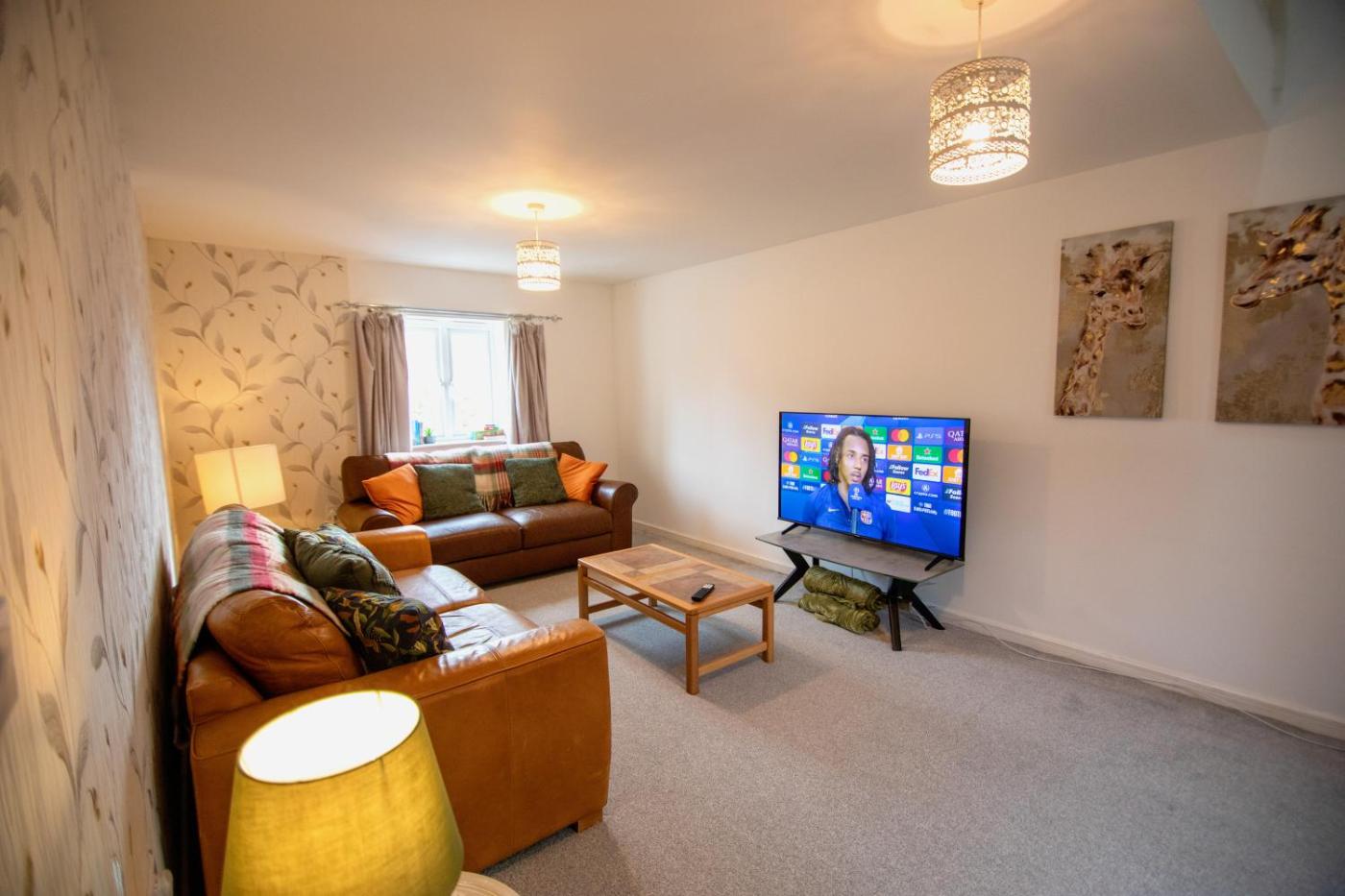 Four-Bedroom House. This spacious holiday home comes with 1 living room, 4 separate bedrooms and 3 bathrooms with a bath and free toiletries. The well-equipped kitchen has a stovetop, a refrigerator, a dishwasher and kitchenware. The holiday home features a washing machine, a dining area, an electric kettle, a flat-screen TV, as well as garden views. The unit has 8 beds.