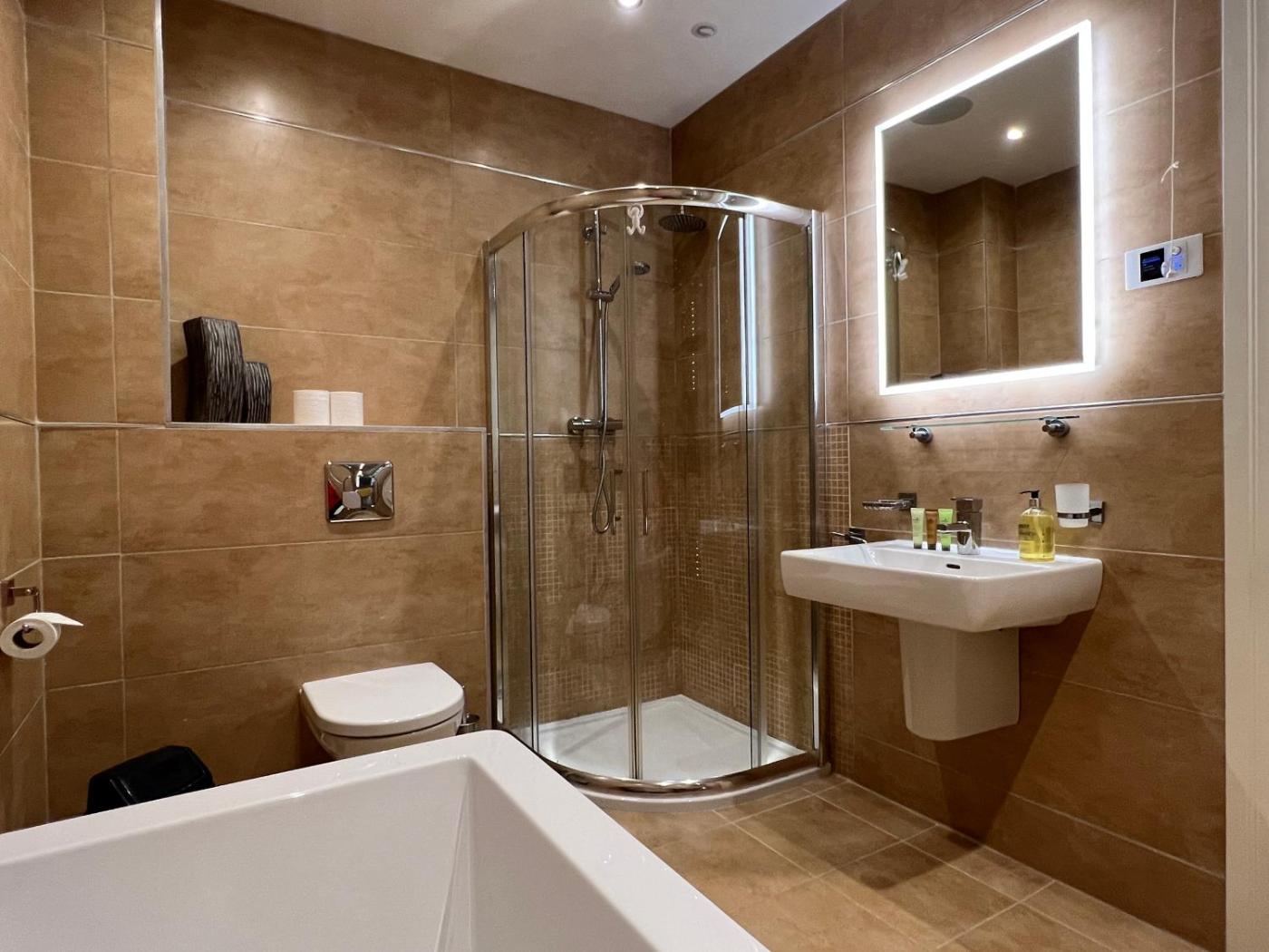 Two-Bedroom House. The fireplace is the standout feature of this holiday home. This spacious holiday home comes with 1 living room, 2 separate bedrooms and 3 bathrooms with a bath and free toiletries. In the well-equipped kitchen, guests will find a refrigerator, a dishwasher, kitchenware and an oven. Boasting a terrace with garden views, this holiday home also features a washing machine and a flat-screen TV with streaming services. The unit has 4 beds.