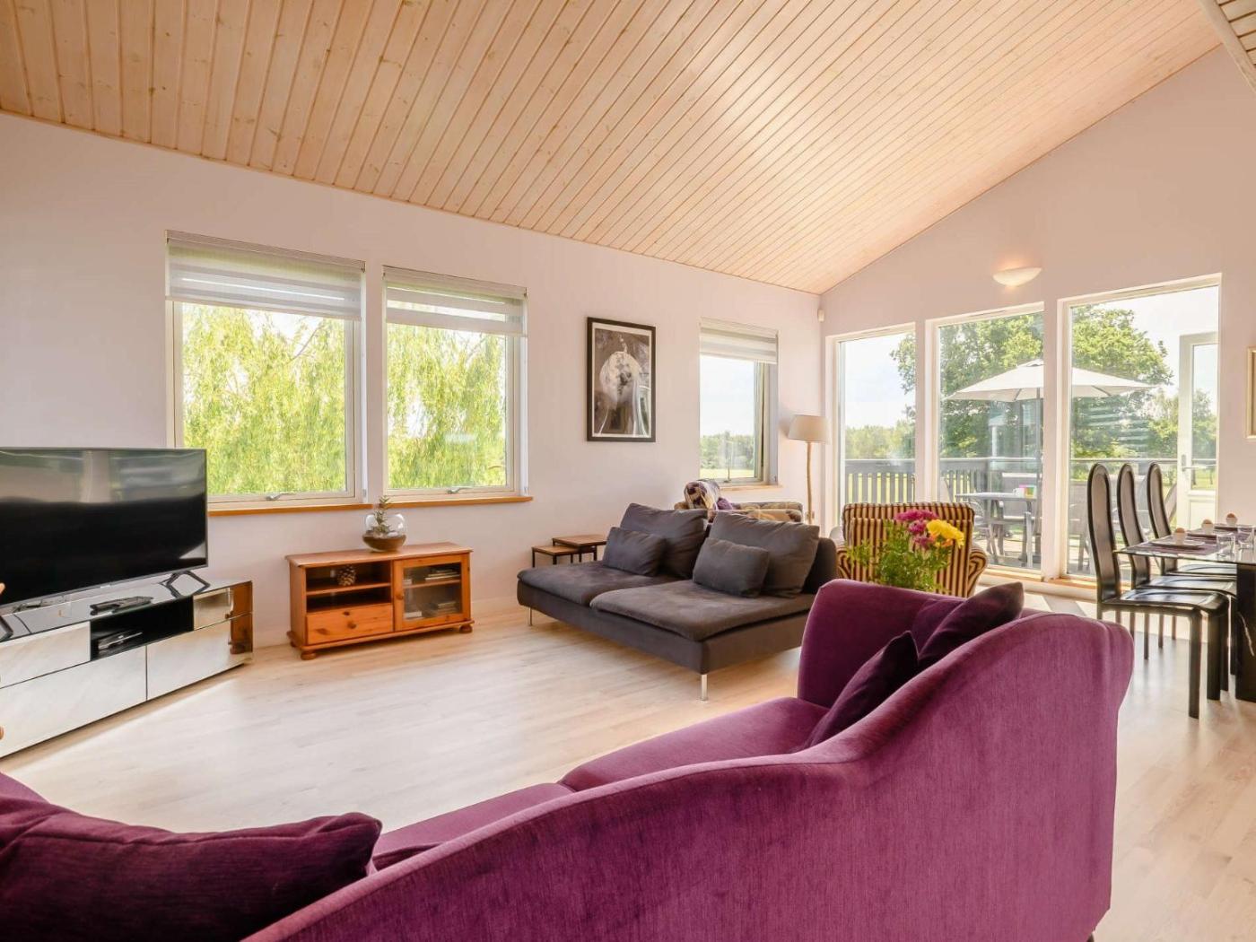 Three-Bedroom House. The holiday home features 3 bedrooms, 2 bathrooms and a kitchen. The fully equipped kitchen has a refrigerator, a dishwasher, kitchenware and an oven. The holiday home provides a TV, a washing machine, a high chair for children, heating as well as garden views. The unit offers 3 beds.