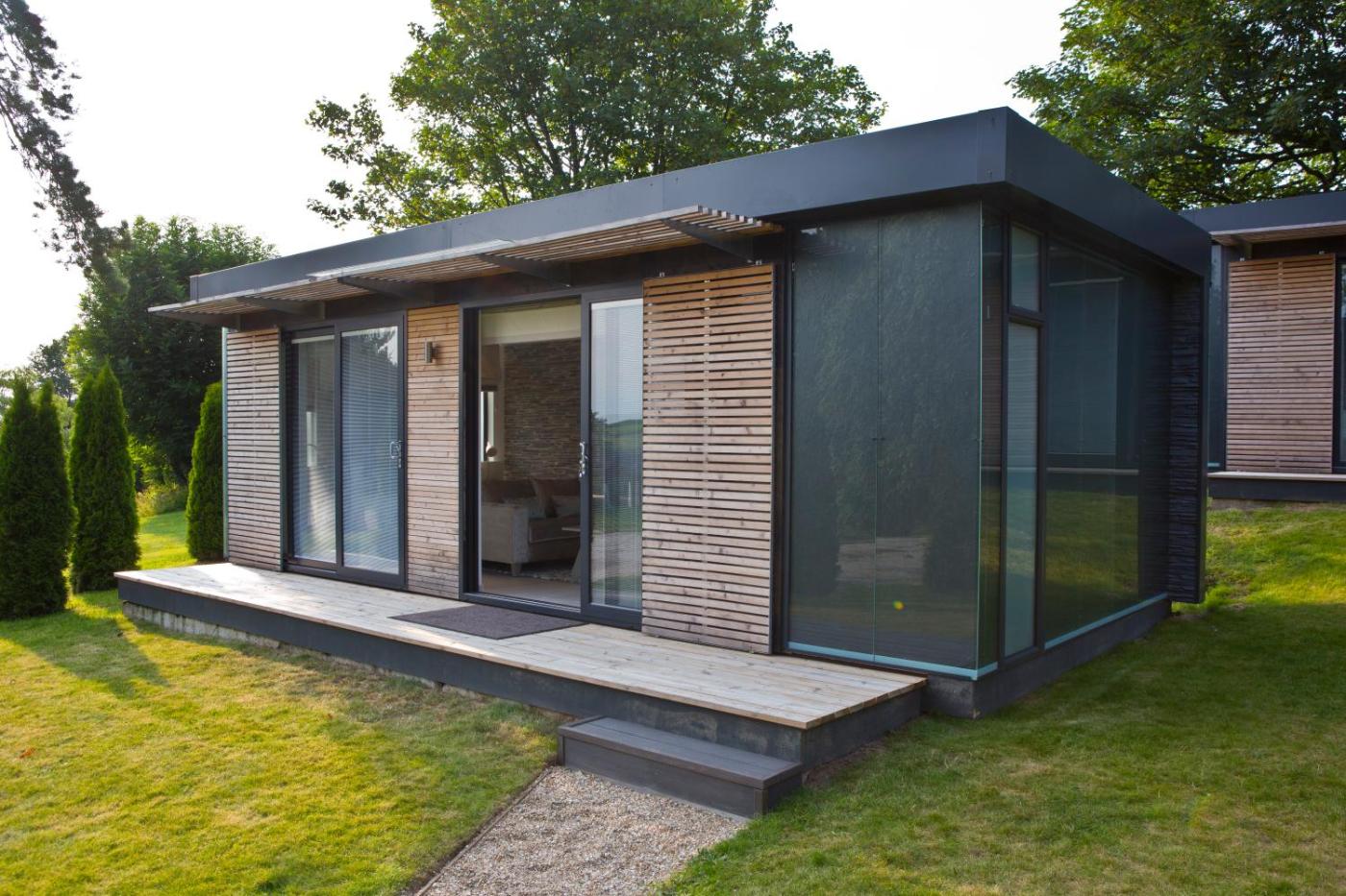 Two Bedroom Family Lodge. Designed to the highest specifications, this stunning family suite offers a twin bedroom and a bedroom with a king-size bed. There are 2 generous bathrooms, one with a deluge shower and another with a bath. The private suite is situated in the stunning gardens of the Kentisbury Grange Hotel. ;
