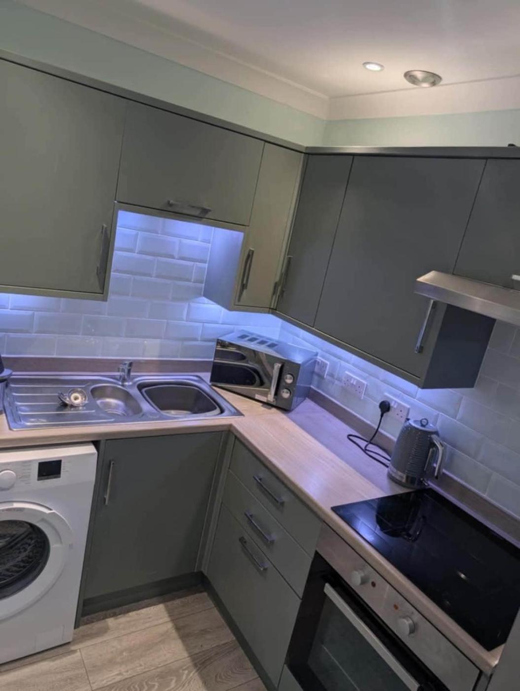 The 2-bedroom holiday home has a living room with a flat-screen TV with streaming services, a fully equipped kitchen with an oven and microwave, and 1 bathroom with walk-in shower. Towels and bed linen are available in the holiday home. There is also a seating area and a fireplace.
