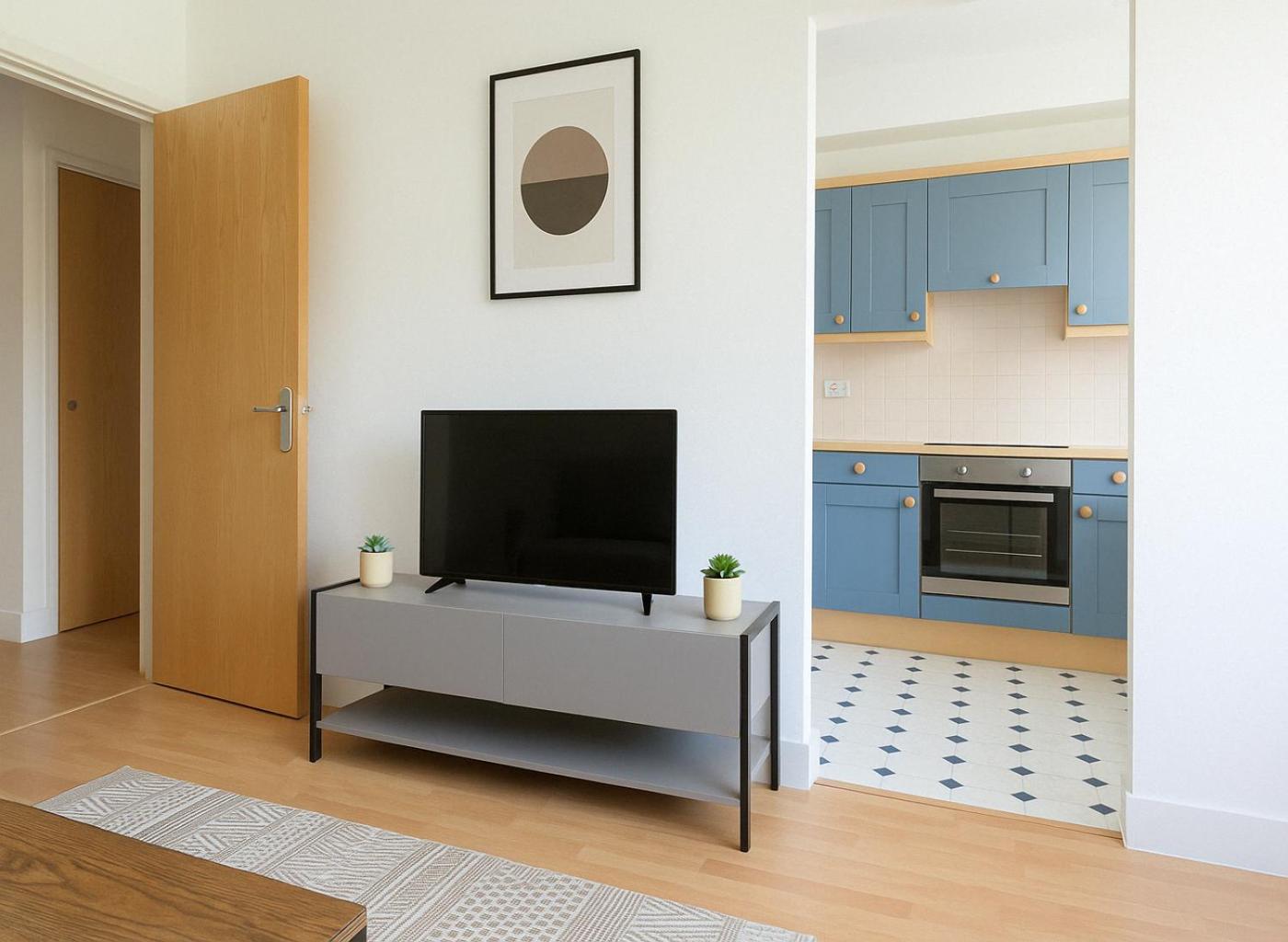 One-Bedroom Apartment. This apartment consists of 1 living room, 1 separate bedroom and 1 bathroom with a bath and free toiletries. Guests can make meals in the kitchen that is equipped with a stovetop, a refrigerator, kitchenware and an oven. The apartment provides a flat-screen TV with streaming services, a washing machine, a seating area, a dining area as well as a quiet street view. The unit offers 3 beds.