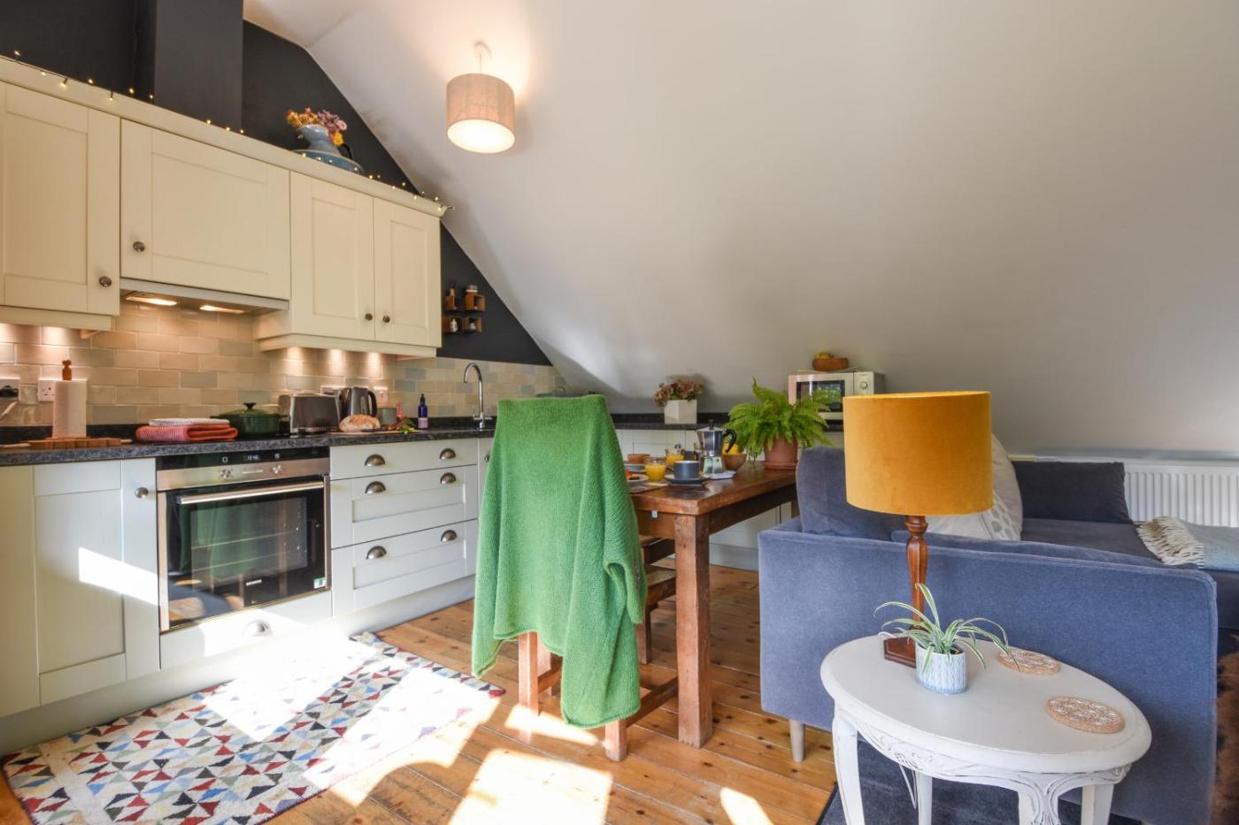 The holiday home features 1 bedroom, a fully equipped kitchen with a dishwasher and an oven, a washing machine, and 1 bathroom. Offering free private parking, this 4-star holiday home also features free WiFi. There is also a seating area and a fireplace.