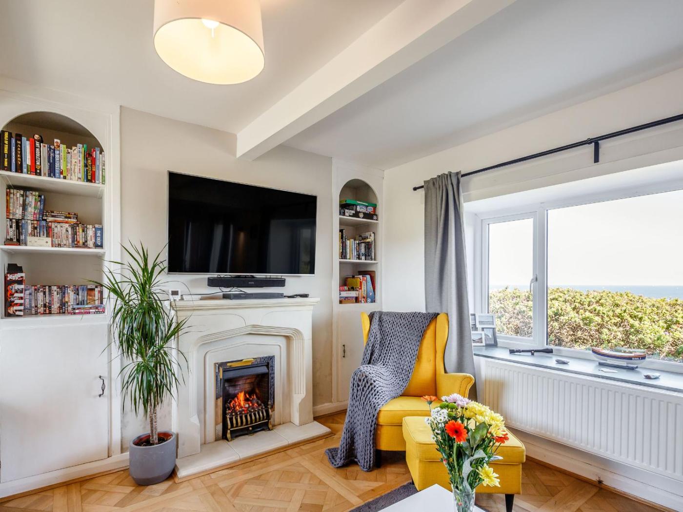 Holiday Home. This holiday home features a hot tub and a fireplace. This spacious holiday home includes 3 bedrooms, a seating area with a sofa and 2 bathrooms with a bath or a shower. The fully equipped kitchen has a stovetop, a refrigerator, a dishwasher and an oven. The holiday home offers a TV, a washing machine, a tea and coffee maker, a dining area as well as sea views. The unit has 4 beds.