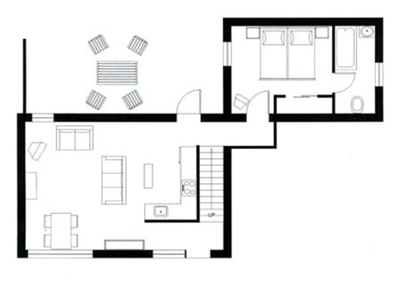 Hazel Cottage. This large cottage has a lounge with a picture window looking onto the central courtyard. There is a sofa, a wood-burning stove and a flat-screen TV. The ground floor has a double en suite bedroom and there are 2 more rooms upstairs. The patio offers views of the loch and mountains. ;