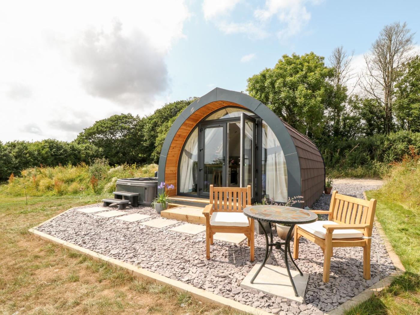 Holiday Home. The hot tub and fireplace are the standout features of this holiday home. This holiday home comes with 1 bedroom, a seating area with a sofa and 1 bathroom with a walk-in shower. In the well-equipped kitchen, guests will find a stovetop, a refrigerator, an oven and a microwave. The holiday home features a dining area, a wardrobe, an electric kettle, heating, as well as a TV. The unit has 1 bed.