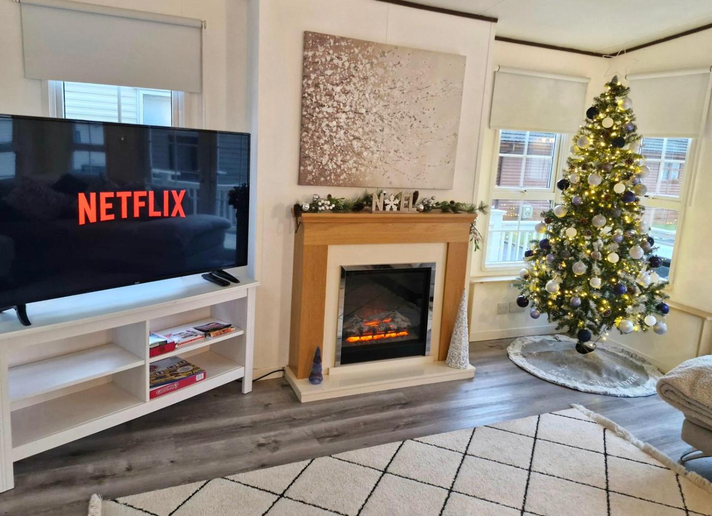 The holiday home has 2 bedrooms, a flat-screen TV with streaming services, a fully equipped kitchen with an oven and a microwave, and 1 bathroom with a hot tub. Towels and bed linen are available in the holiday home. There is also a seating area and a fireplace.