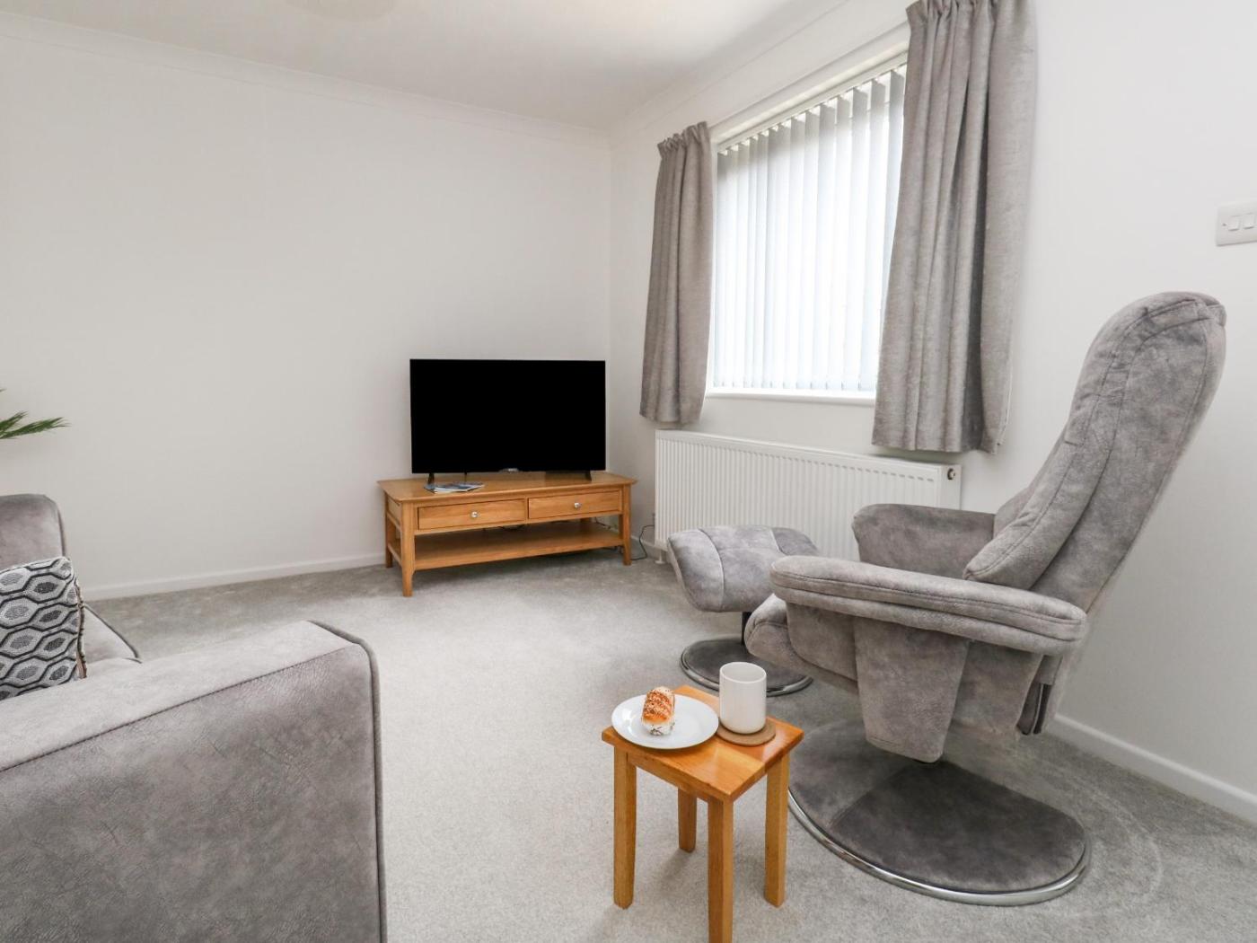 Holiday Home. This holiday home includes 1 bedroom, a seating area with a sofa and 1 bathroom with a walk-in shower. Guests can make meals in the kitchen that has a stovetop, a refrigerator, a dishwasher and an oven. The holiday home offers a washing machine, a dining area, a wardrobe, an electric kettle, as well as a TV. The unit has 1 bed.